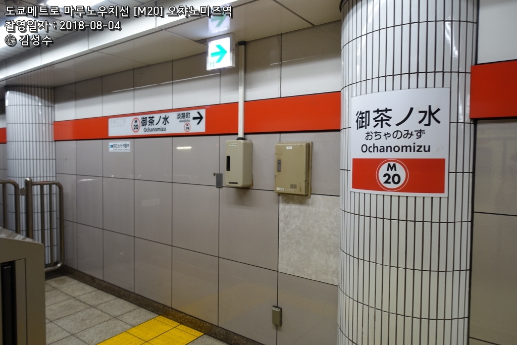 도쿄메트로 신오챠노미즈역 환승안내(환승시간 10~15분)