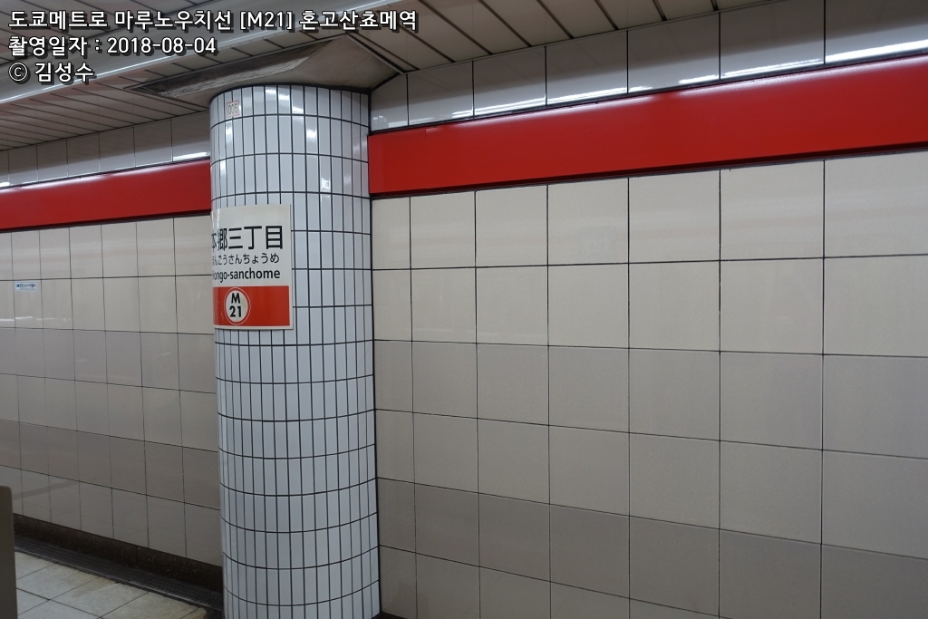 도에이 혼고산쵸메역 환승안내(환승시간 5~10분)