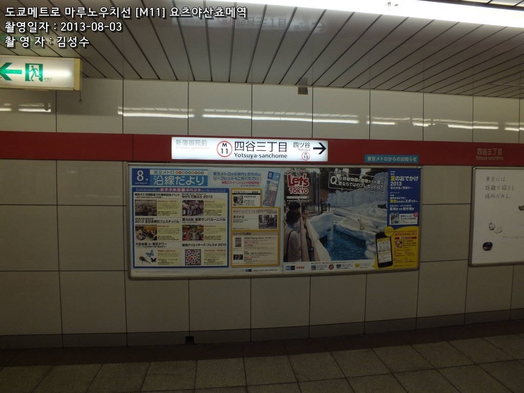 도쿄메트로 요츠야역 환승안내(환승시간 10~15분)