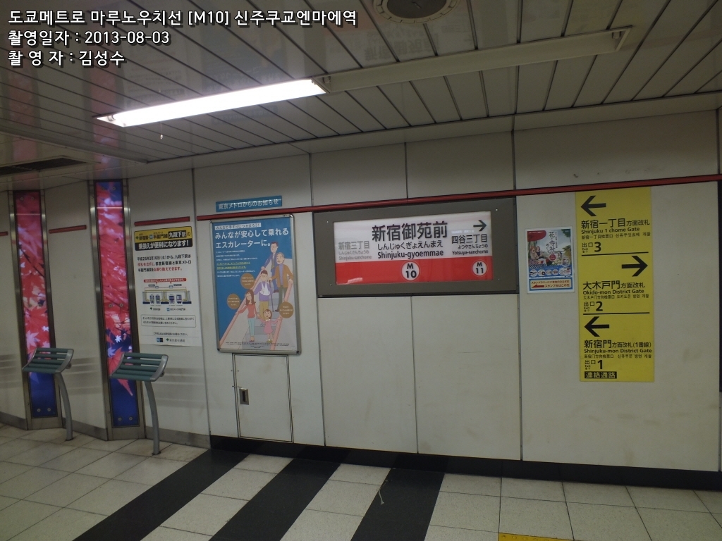 도쿄메트로 신주쿠산쵸메역 환승안내(환승시간 5~10분)
