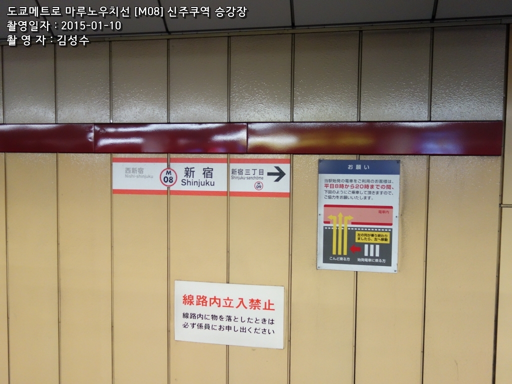 1/2번 승강장 - 도쿄메트로 마루노우치선 지선(M06) - 호난쵸 방면(일부 직통운전)