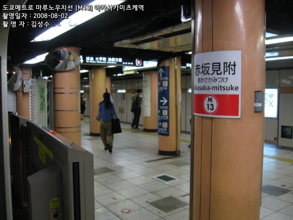 아카사카미츠케역 환승안내(환승시간 0~5분(일부 동일홈 환승))