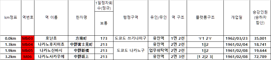 [간토지역]★ [4/4] 도쿄메트로 - 도쿄메트로 마루노우치선 지선(丸の内支線/호난쵸~나카노사카우에, 3.2km)