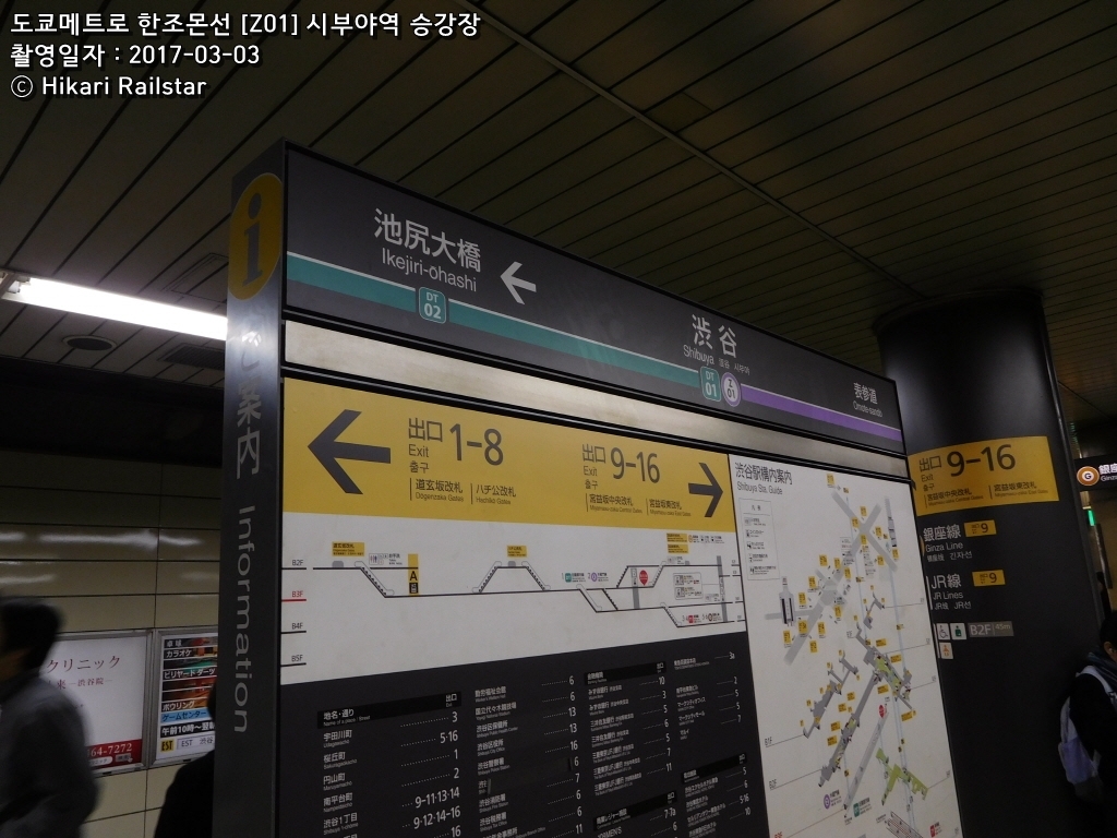 도큐/도쿄메트로 시부야역 환승안내(환승시간 5~10분)