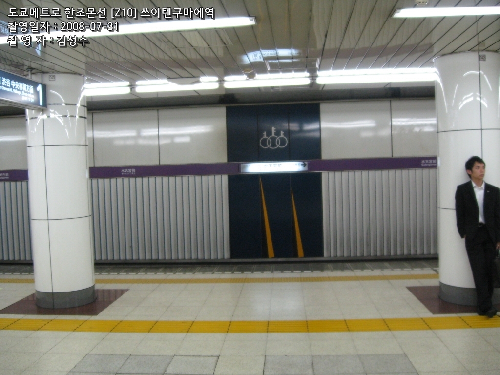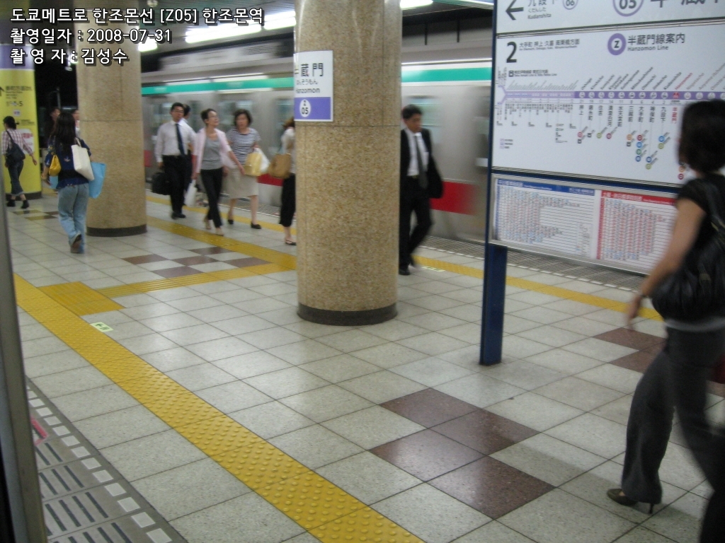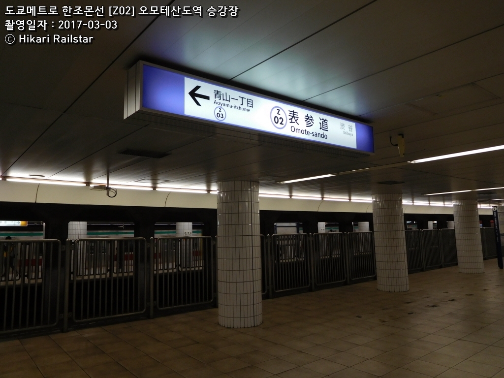 도쿄메트로 한조몬선은 시부야를 출발해서 오시아게까지 이르는, 도쿄메트로가 운영하는 지하철노선으로, 철도요람 상에는 11호선 한조몬선으로 되어 있다. 라인컬러는 보라색. 긴자선의 혼잡 완화를 위한 <바이패스 3노선> 중의 하나로 건설이 차근차근 진행되었으나, 인근 지역의 땅 주인의 반대운동이 일어났고, 또한 버블붕괴로 인해 에이단의 수익이 감소하여 오시아게까지 완전히 개통되는 데는 당초 예상보다 상당한 시간이 걸렸다. 시부야~아사쿠사 구간을 다니는 긴자선에 비해 거리도 2.5km가량 짧고, 도쿄메트로 노선 중에 최고로 역수가 적고 소요시간도 적다. 그러나 TTT 직통운행이 개시된 이후 도큐 덴엔토시선 츄오린칸~토부 닛코선 미나미쿠리하시까지의 거리는 98.5km로, 도쿄메트로 열차가 다니는 노선 중에서 제일 긴 노선이 되었다.