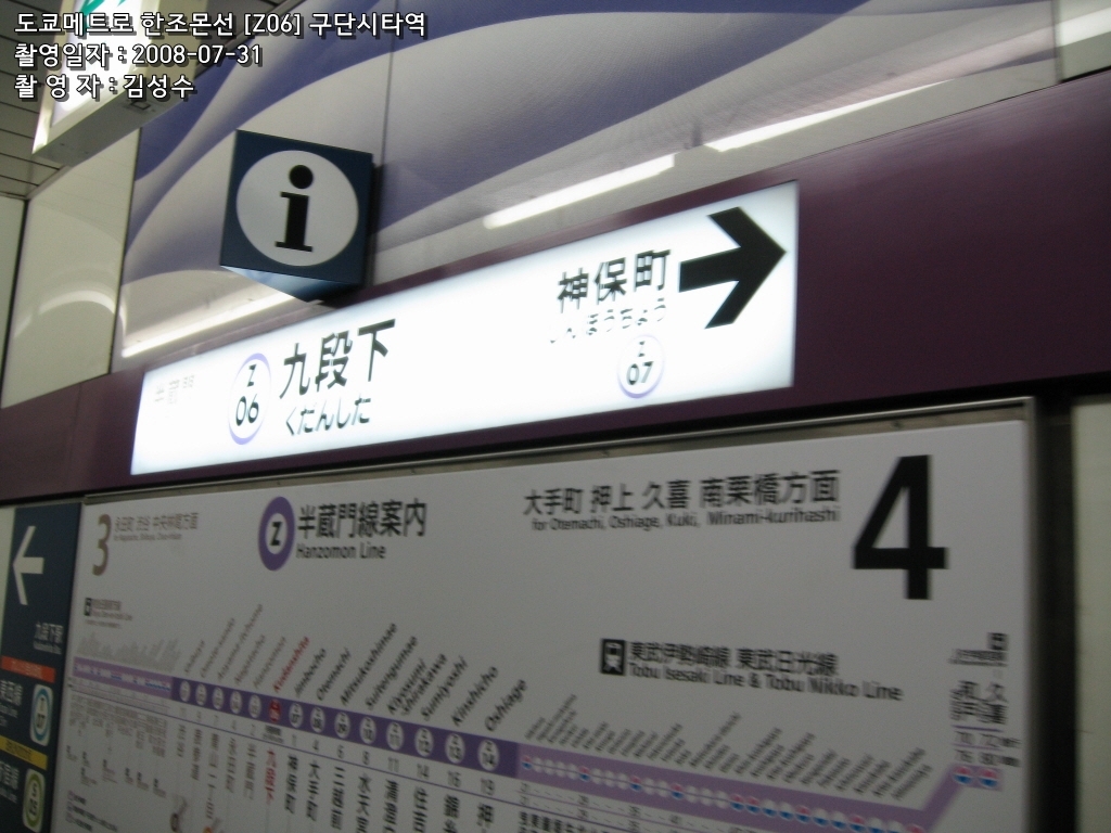 도쿄메트로 구단시타역 환승안내(환승시간 5~10분)