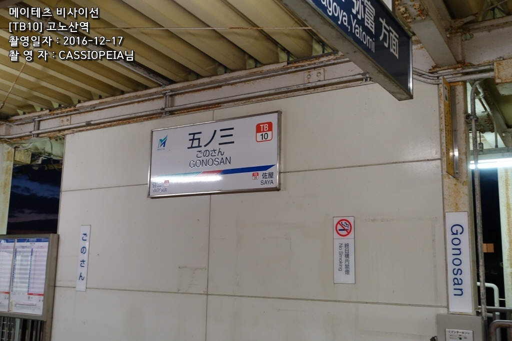 니시오선 키라요시다역 -> 급행 -> 진구마에역(종별변경) -> 준급 -> 쓰카구치(종별변경) -> 보통 -> 사야(되돌림) -> 보통 -> 쓰카구치(되돌림) -> 보통 -> 야토미(되돌림) -> 보통 -> 메이테츠나고야(종별변경) -> 준급 -> 토요아케(되돌림) -> 준급 -> 진구마에(종별변경) -> 보통 -> 사야(되돌림) -> 준급 -> 메이테츠나고야(종별변경) -> 급행(일부 준급) -> 키라요시다(종착)