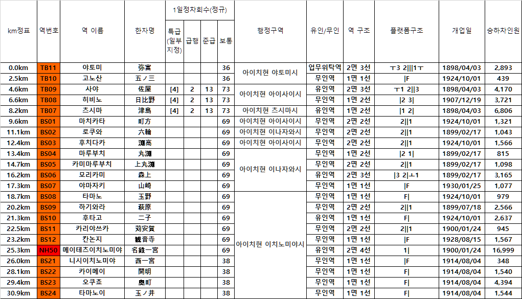 [기타지역]★ [22/22] 나고야철도 - 메이테츠 비사이선(名鉄尾西線/야토미~타마노이, 30.9km)