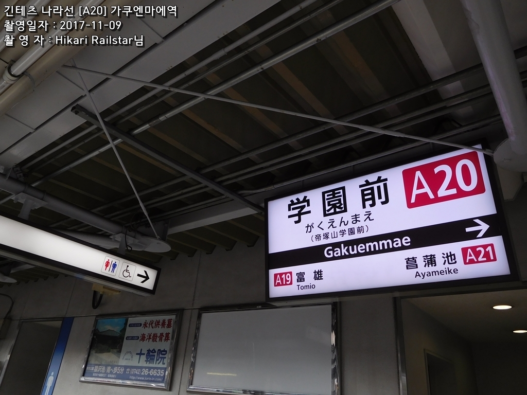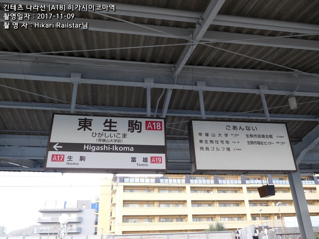 1/2번 승강장 - 긴테츠 이코마강삭선(Y17) - 호잔지/이코마산죠 방면