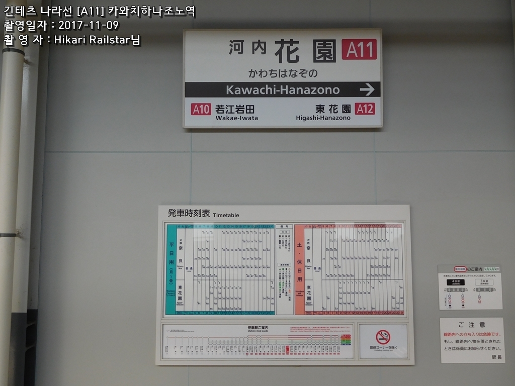 히가시하나조노~야마토사이다이지 : 쾌속급행 3편, 급행 3편, 구간준급 3편, 보통 3편