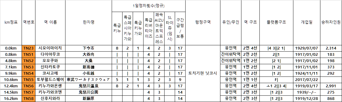 영업 km : 16.2km(시모이마이치~신후지와라)