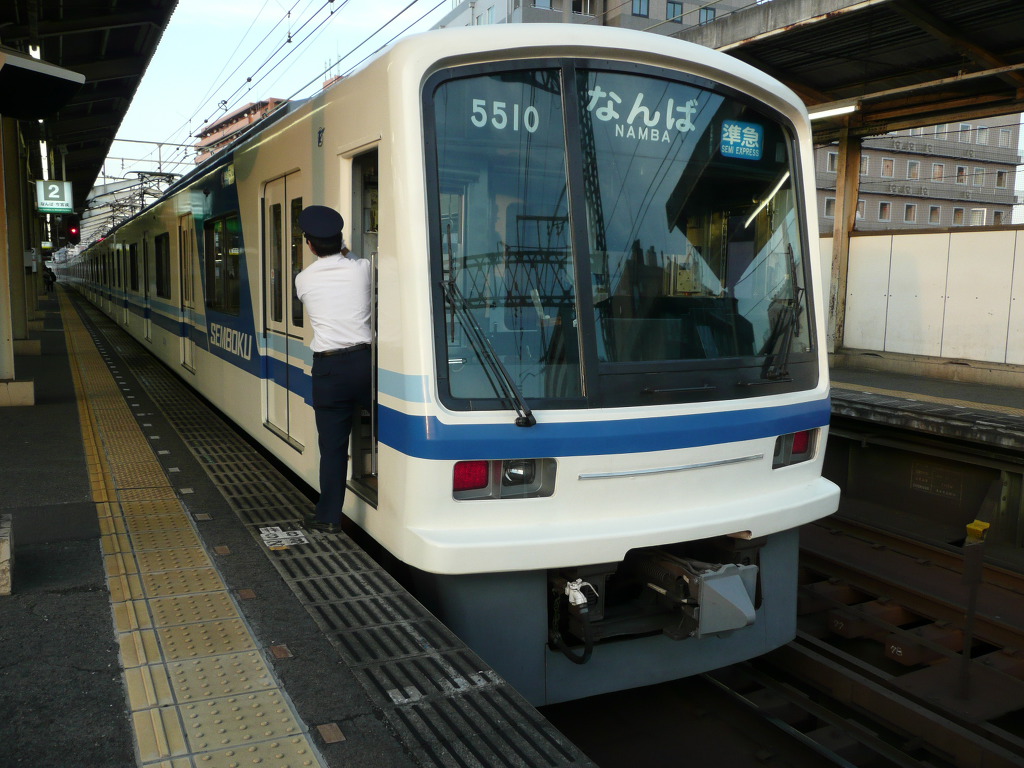 구간급행 - 1987년 4월 미도스지선의 나카모즈역 연장개업과 맞추어 신설된 등급으로, 난바/신이마미야/텐가차야역을 정차한 후에 사카이히가시역과 후카이역에 정차한 뒤에 그 이후의 센보쿠고속철도 역에는 각역에 정차한다. 두 회사의 경계역인 나카모즈역도 통과하는 특징이 있다. 낮시간대에는 시간당 4편으로 운행되고 있다. 8량편성으로 운행되는 출근시간대 열차는 4호차가 여성전용차량으로 설정되어 있다. 이즈미츄오~텐가차야 구간에만 여성전용차량이 설정되어 있다.