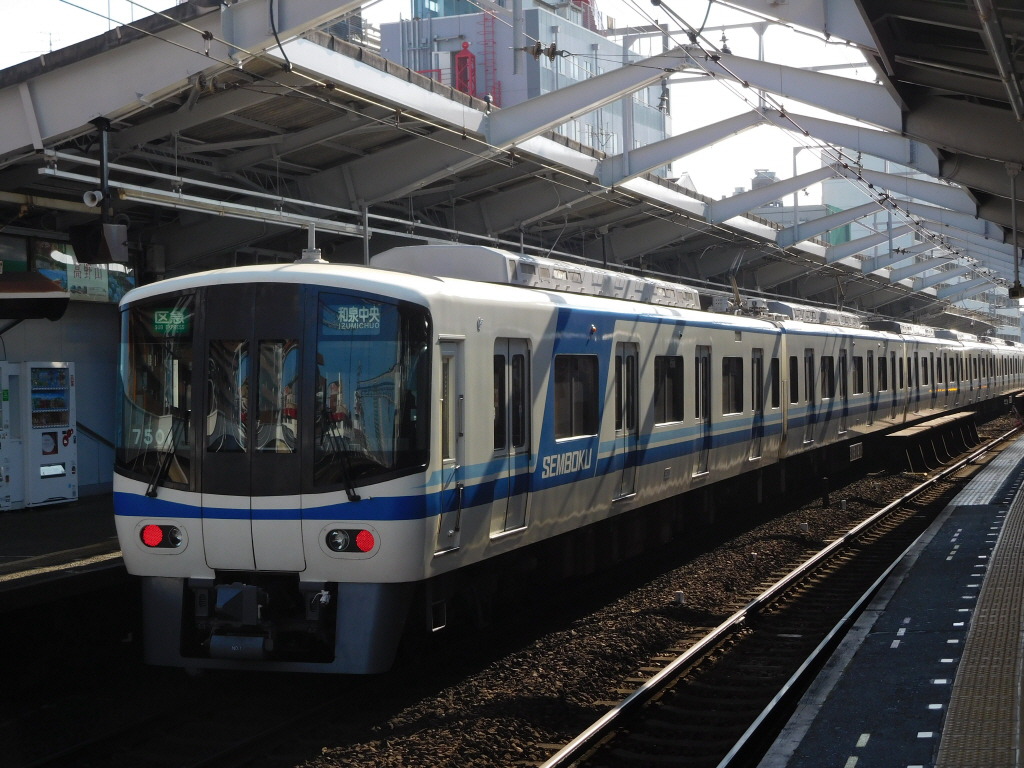 각역정차 - 나카모즈~이즈미츄오 구간을 선내 왕복운행하며, 일부 차량기지가 있는 고묘이케행 열차가 있다. 예전에는 난바 방면으로 직통운전하는 열차도 있었으나 2015년 12월 이후에는 모두 선내 운전으로 전환되었다. 6량/8량편성으로 운전되고 있다. 나카모즈역에서 고야선 각정열차와의 접속이 가능하다.