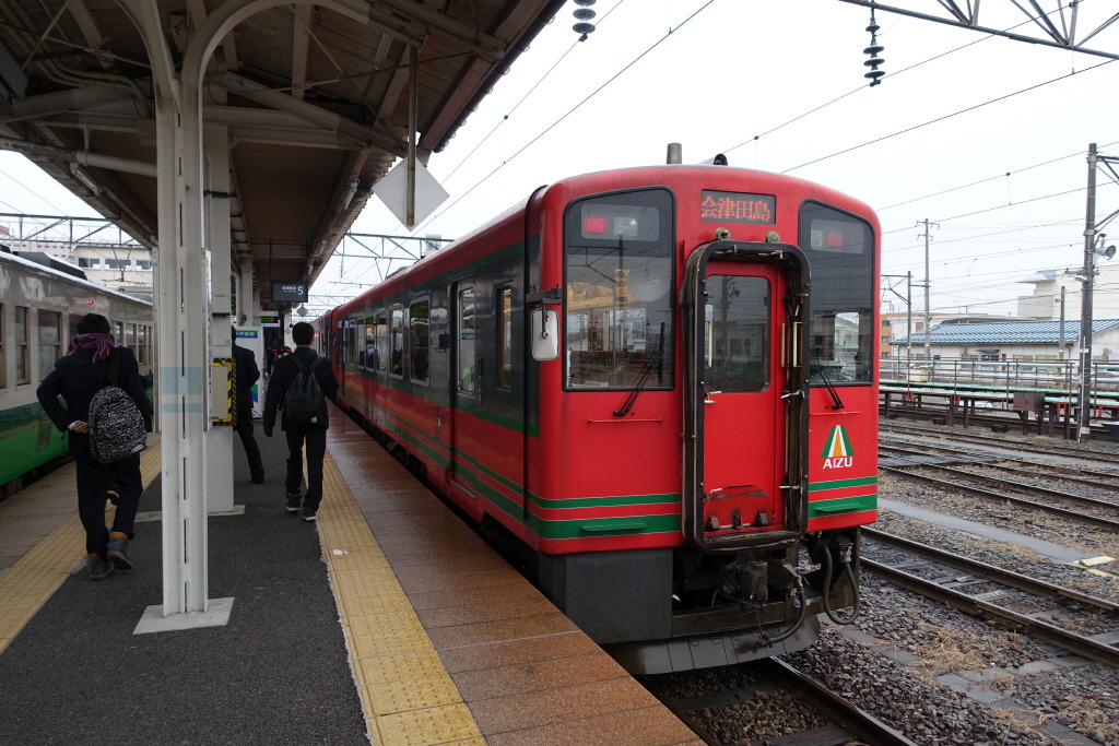 보통열차 - 아이즈와카마츠역을 출발하는 보통열차는 주로 아이즈타지마역까지만 운행되며, 아이즈타지마역에서 토부철도 방면의 보통열차와 접속된다. 그 외 아이즈타지마~아이즈코겐오제구치 구간만을 운행하는 전철 보통열차가 소수 설정되어 있다. 이 열차는 야간철도 열차 및 아이즈와카마츠행 보통열차와 접속된다. 특히 아이즈타지마역에서 특급 리버티아이즈와 접속되는 열차는 <릴레이 --호>(--호는 리버티아이즈의 호수)로 불리고 있다. 1왕복은 쾌속열차며, 나머지 3왕복은 보통열차이다.