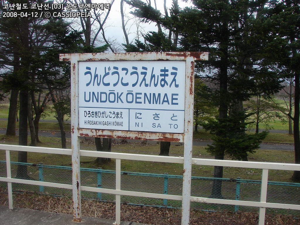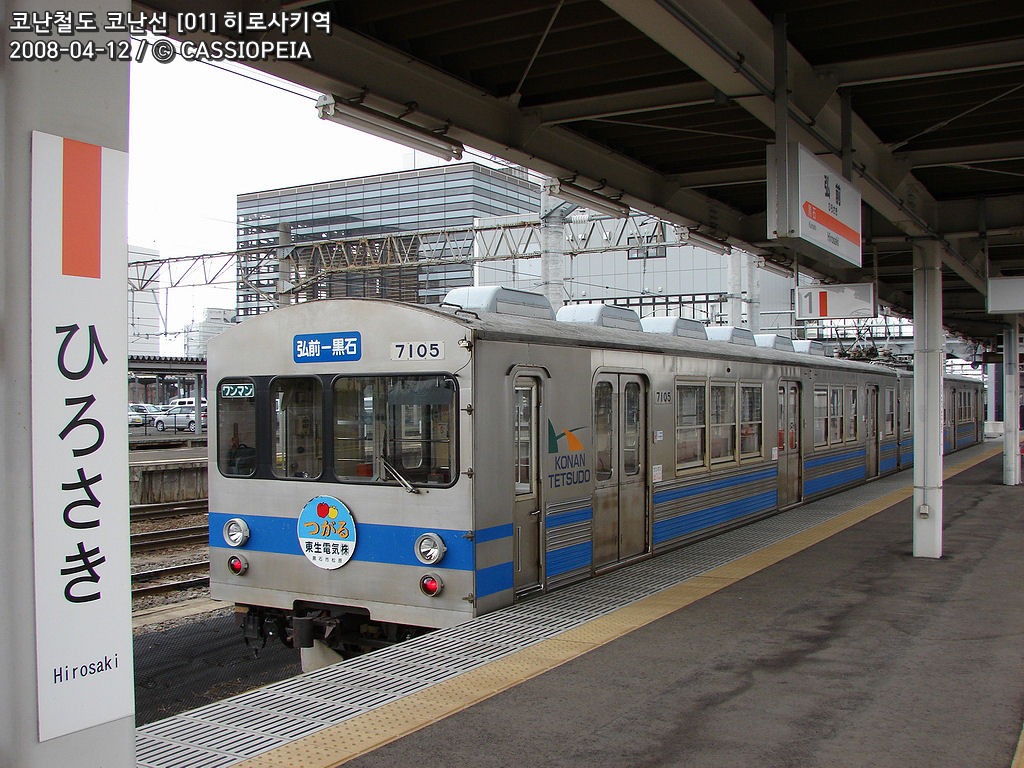 코난철도 코난선은 코난철도 소속의 사철노선으로, 히로사키시와 쿠로이시시를 연결하는 단선 전철노선이다. 코난철도는 관광철도를 제외한 보통철도 사업자로는 유일하게 냉방차가 배치되어 있지 않은 것이 특징이다. 1일승차권은 1,000엔에 발매되고 있다.
