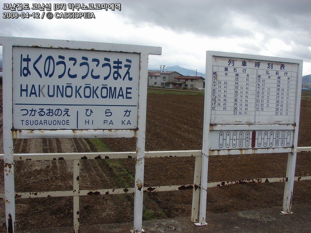 9.5km | 07 | 하쿠노코코마에 | 柏農高校前 | 23 | 무인역 | 1면 1선 | F| | 1980/06/23 | 247 | |
