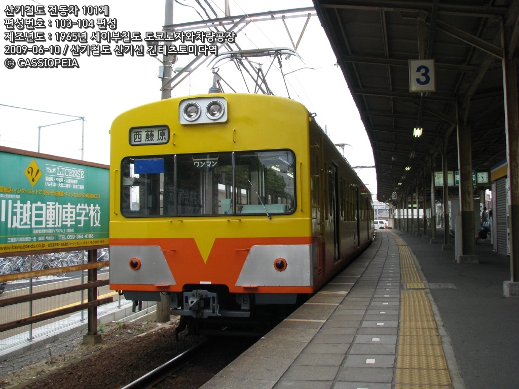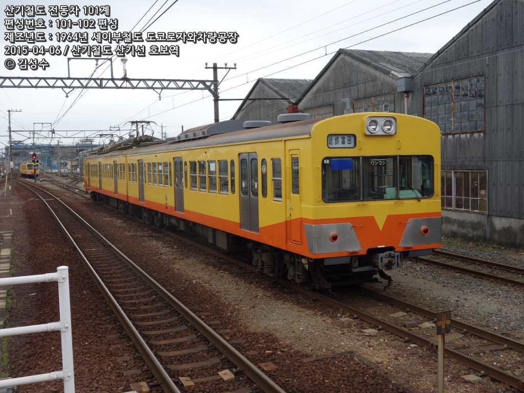 산기철도 101계 전동차는 구 세이부철도의 401계를 양도받아 산기선에서 사용하고 있는 전동차 모델로, 세이부 401계는 냉방을 탑재한 고성능차량으로 차령에 비해서 성능이 우수하기 때문에, 세이부에서 퇴역한 38량 전체가 타 사철회사로 양도되었는데, 이 중 6량이 산기철도로 넘어왔다. 1990년~1993년 기간에 걸쳐 401/405/409편성이 양도되었으며 각각 101계 101-103-105편성이 되었다. 양도될 당시 전조등의 모양 및 도색이 변경되었고, 대차는 FS-342(세이부 701계에서 유용한 것)가 탑재되었고, 1인승무 대응 개조도 시행되었다. 현재도 산기선의 주력 차량으로 활동중이며, 특히 101편성은 현역 최고참의 세이부 출신 차량으로 활동하고 있다.