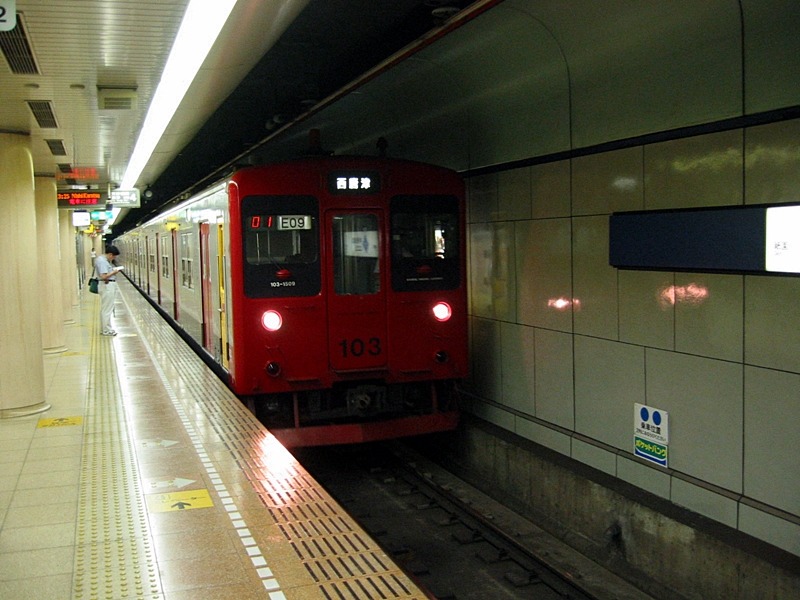 - 지하철 구간을 운행중인 103계 1500번대. 민영화 후엔 역시 큐슈답게 알록달록한 도색으로 바꾸었다.