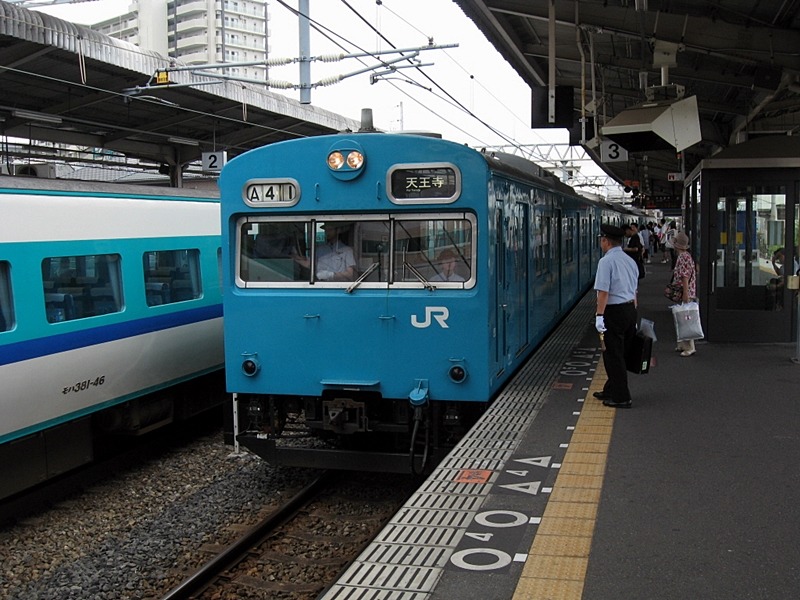 - 간사이공항쪽으로 가는 한와선에서는 아직도 주력차량으로 활약중인 103계.
