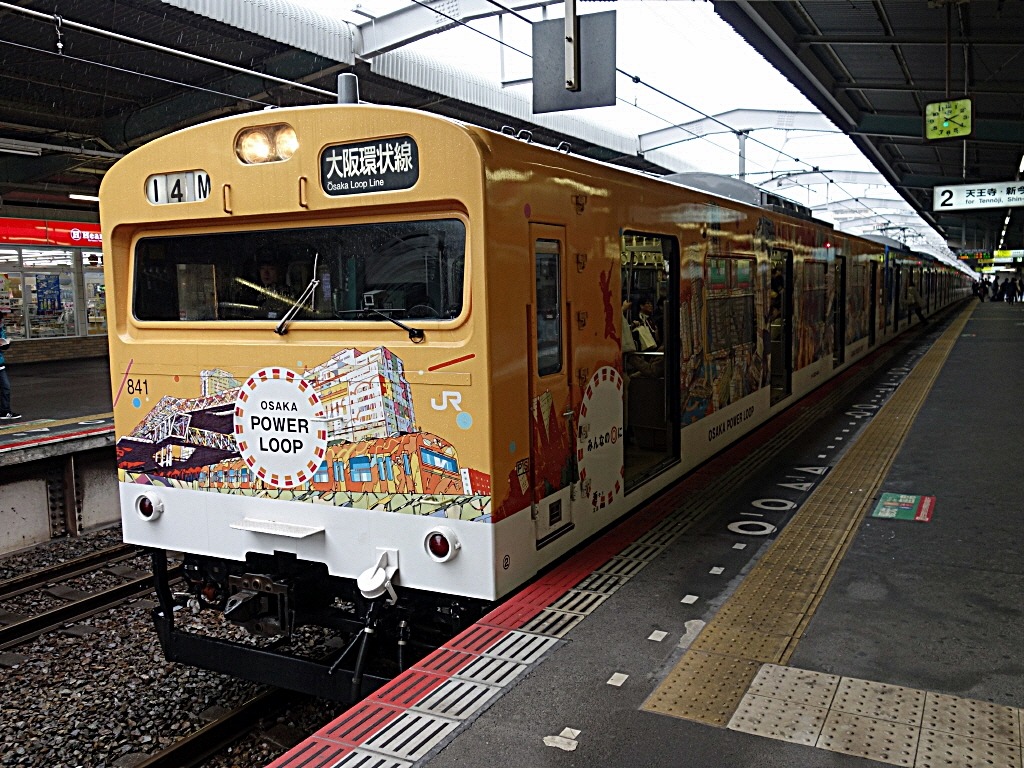 - 오사카환상선의 103계는 이래저래 특별도색이 많았다. 유메사키지선도 겸하기 때문에 이렇게 유니버셜시티의 래핑도색을 입히고 운행하기도 한다.
