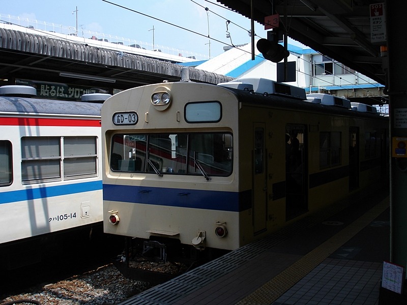 - 가코가와선의 103계 3350번대. 2M 2량편성으로 체질개선 N40 개조가 되어있다. 주로 수요가 많은 니시와키시-타니가와 구간에서 운용되며 이후 동쪽 구간은 125계 전동차가 운용되고 있다.
