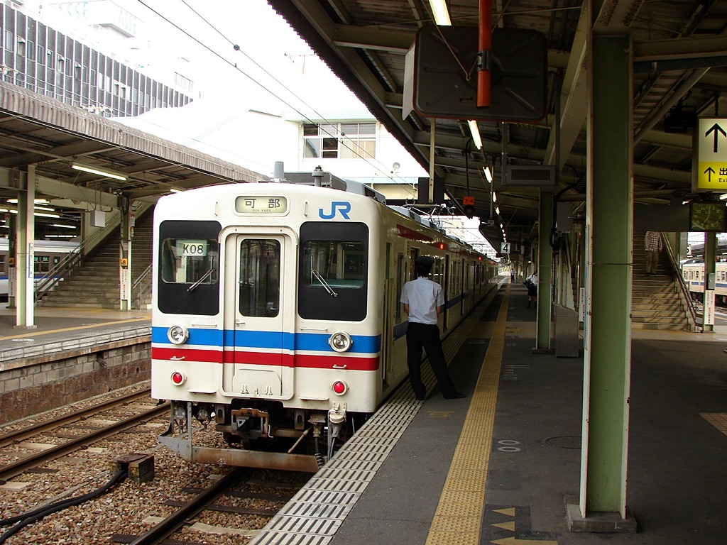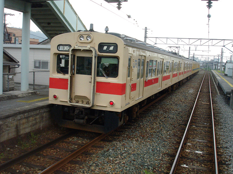 - 오카야마 지구의 105계. 노랑-파랑 도색이 인상적이다. 운전실 유리창 주변만 검은색으로 되어있기 때문에 철도팬들로 부터 "팬더곰" 이라는 별명으로 불리기도 했다.