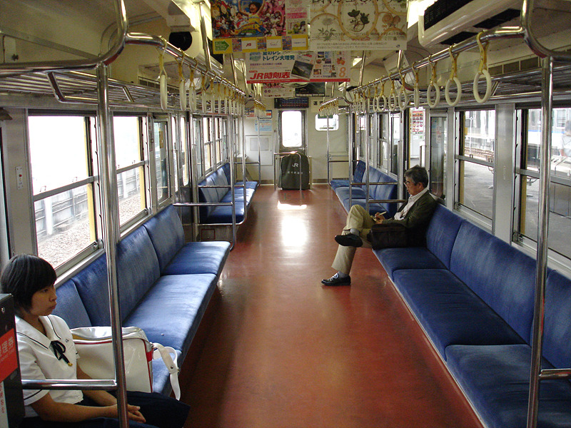 - 체질개선 개조가 된 105계의 차내. 반자동 스위치가 달려있는 등 상당히 개선된 모습을 보여준다.