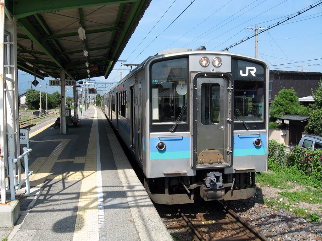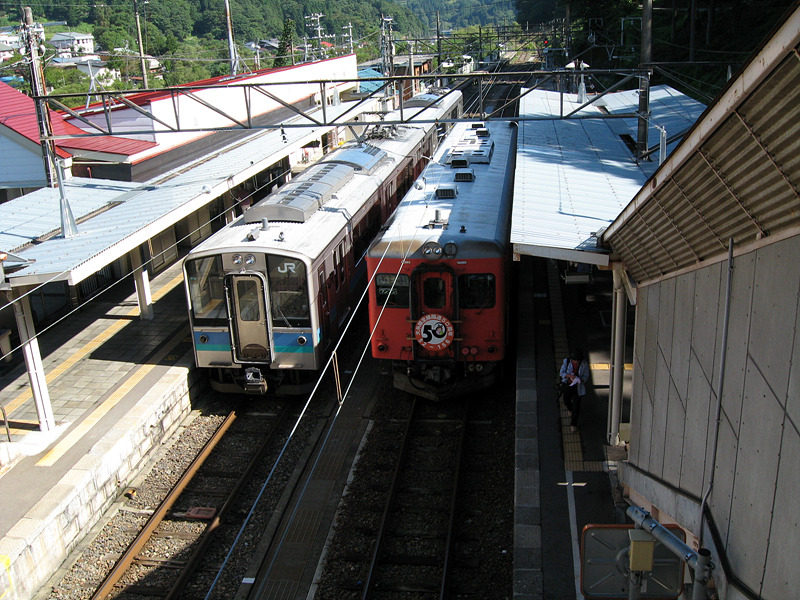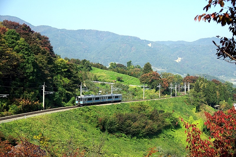- 일본의 3대차창 시노노이선 오바스테역의 고갯길을 올라오는 E127계 전동차.