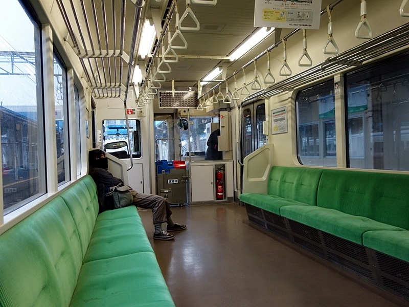 - 실내는 이렇게 롱시트로 되어있다. 니가타시 주변도 출퇴근 시간엔 꽤 혼잡하기 때문에 통근 중심의 배치가 되어있다.