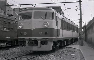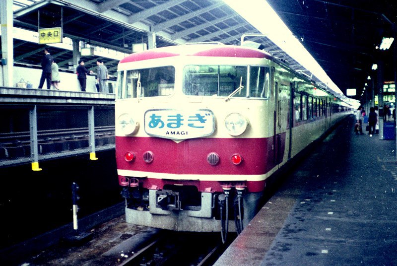 - 특급 "아마기"로 운용되던 시기의 157계. 이런 특징적인 마스크는 185계 전동차가 고스란히 이어받았다고 할 수 있다.