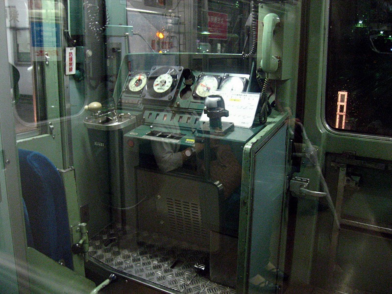 - 203계의 운전실. 가운데 비상탈출용 관통문이 달려있으며 ATC 속도계가 설치되어 있다.