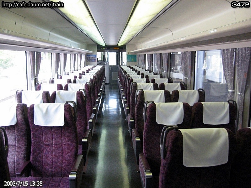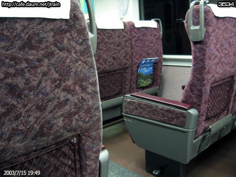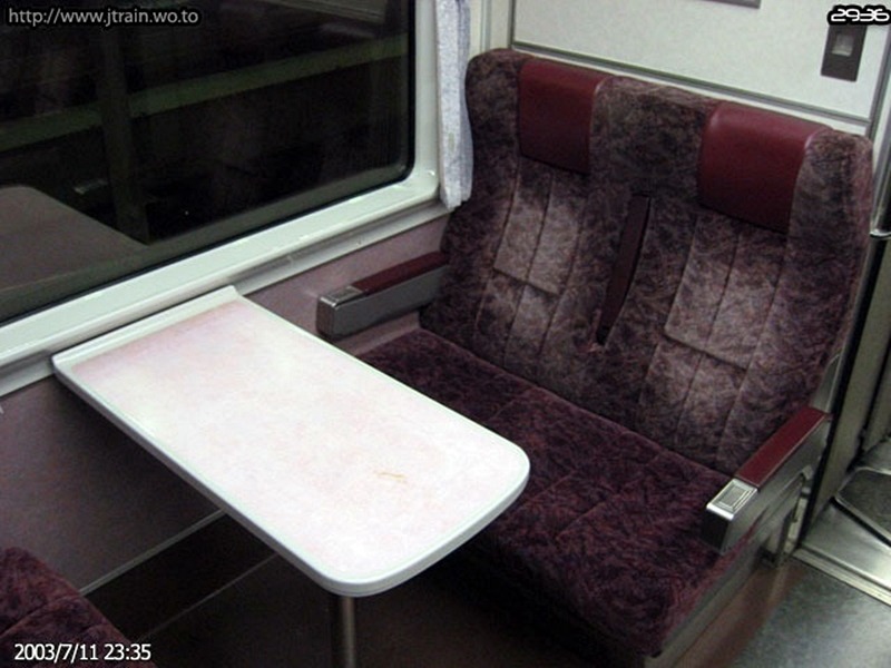 - 373계의 좌석. 발받침, 팔걸이 수납식 테이블등을 갖추고 있어 특급열차라 할 수 있다.