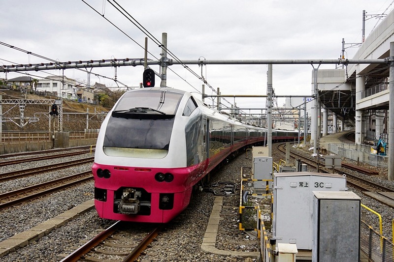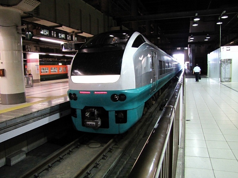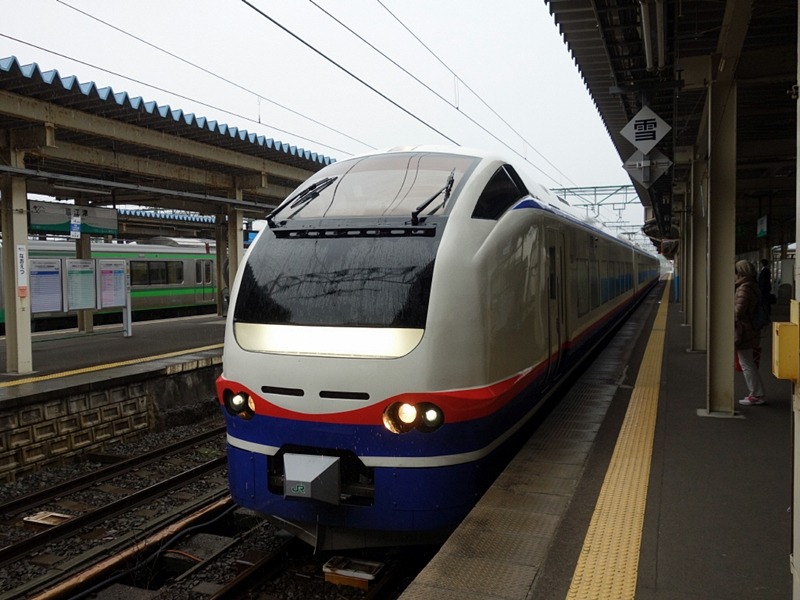 - 특급 "시라유키"로 운행되는 E653계 1100번대. 역시 도색이 파랑-빨강의 특이한 도색으로 되어있다.
