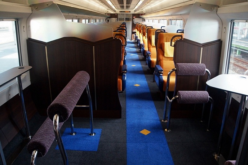 - E653계 1000번대의 그린샤. 간단한 라운지 스페이스와 더불어 좌석 열마다 칸막이를 둔 세미 컴파트먼트로 되어있다.