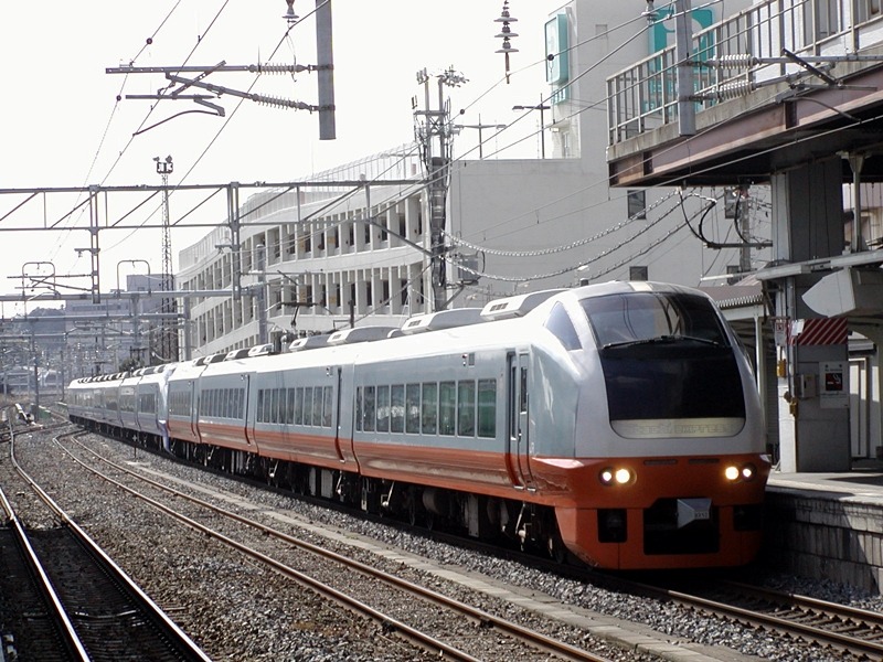 - 태평양 지역에서 동해안 끝으로. 우에츠본선 특급 "이나호"로 운행되는 E653계 1000번대. 동해안의 일몰과 석양의 바다를 상징하는 멋있는 도색이다.