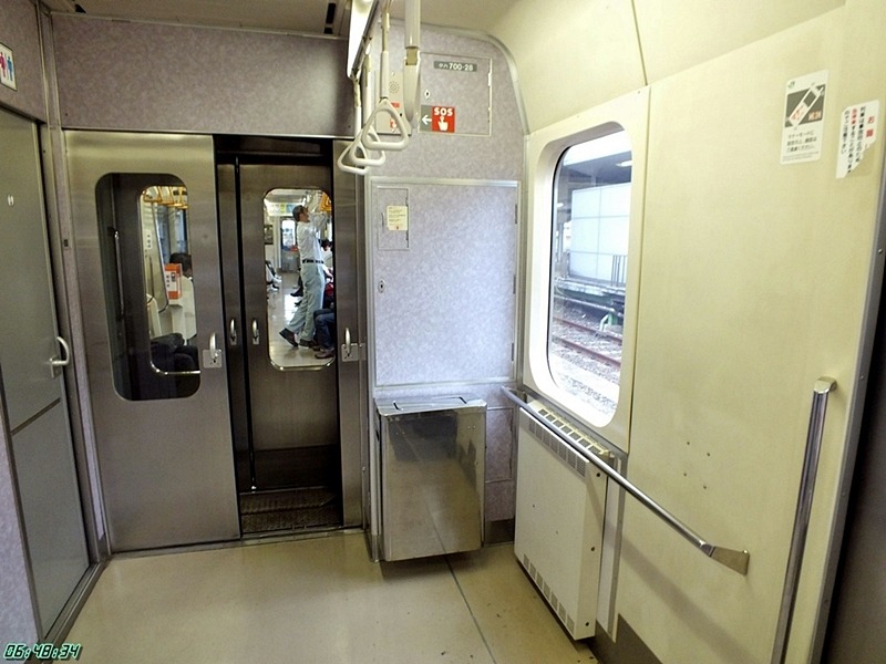 - 신죠역에 정차중인 701계 5500번대. 실내는 롱시트로 되어있다.