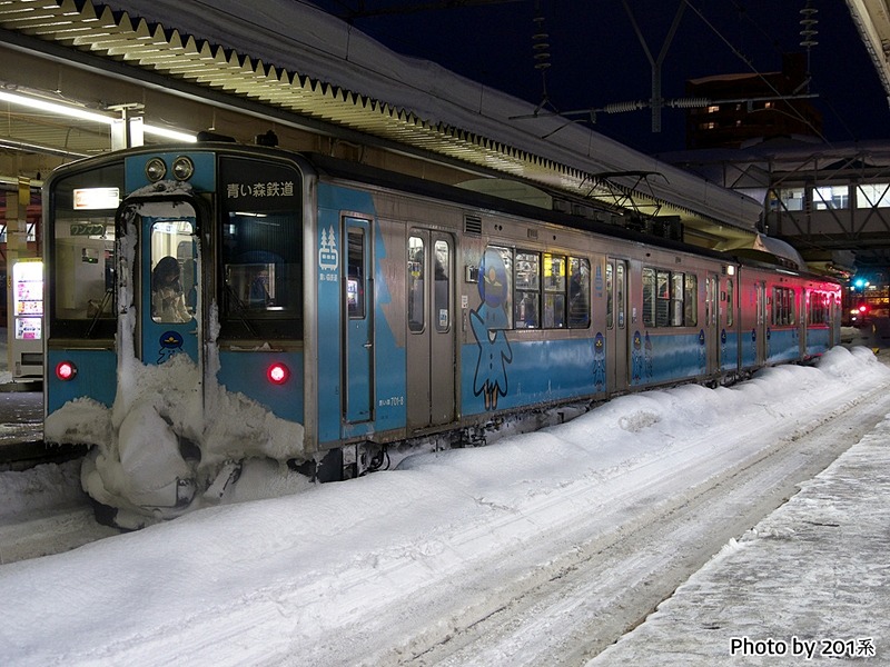 - 아오이모리 철도 소속의 아오이모리701계. 초기 도색은 그냥 파랗게만 칠해놓은 도색이었다. 8개 편성을 0번대에서 양도받고 1개 편성은 마찬가지로 사전에 비용을 대서 제작한것이다.