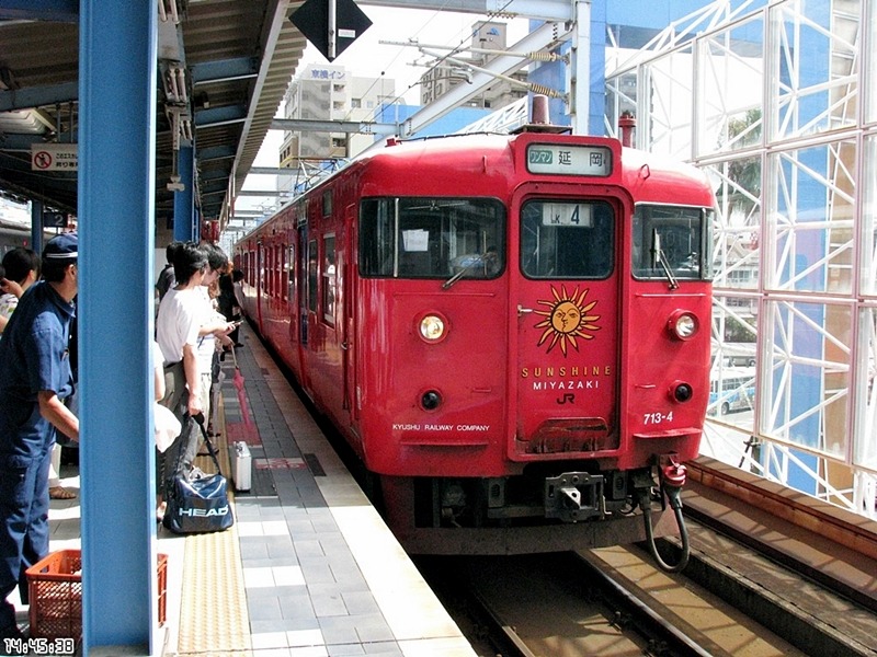 - 미야자키로 이적한 후 도색된 "선샤인" 713계. 큐슈 특유의 빨간 도색은 형식과 차량을 가리지 않았다.