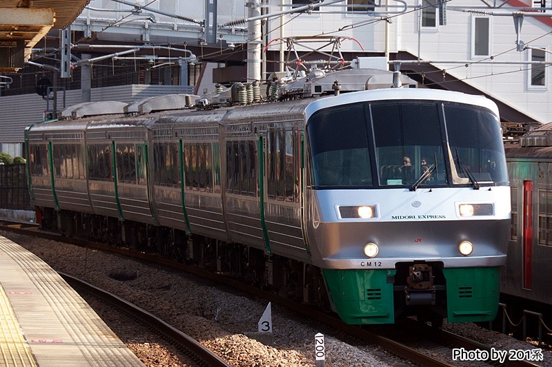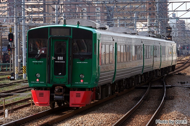 - "미도리 전용편성"의 도색은 이렇다. 누가 디자인의 큐슈 아니랄까봐...