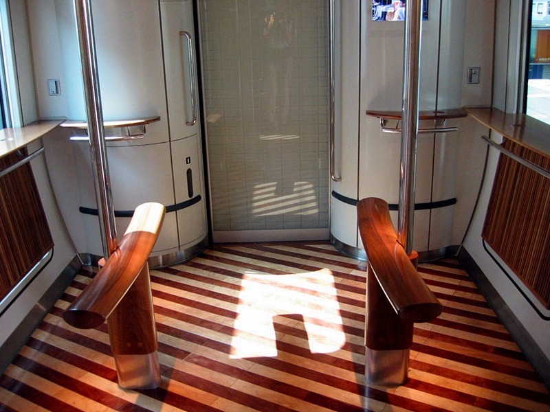 - 데크의 공간 공간마다 수묵화나 서예 작품을 전시해 마치 달리는 미술관 같은 중후한 느낌을 준다.