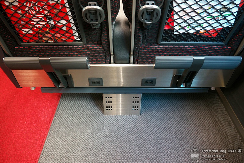 - 콘센트는 여기에 있으며 맨 앞뒷좌석 등 경우에 따라서는 팔걸이 밑에도 있다.