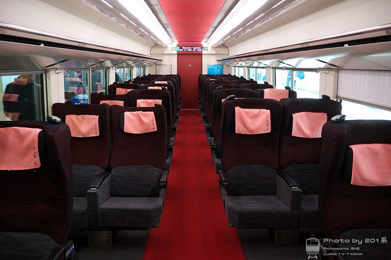 실내는 맑은 아즈사강의 "반짝거림", 비지니스의 "기능성", 레져활동의 "고양감"을 컨셉으로 잡았다. 그린샤, 보통차 모두 2+2의 좌석배치로 그린샤의 좌석은 회색 베이스에 상단부는 검은색+와인색을 심어 보는 각도에 따라 색감이 다르게 표현되도록 했으며 연선의 특산품인 포도를 연상시키는 와인색을 천정부-출입문-통로카펫까지 주욱 깔아 통일된 배색을 사용했다. 보통차의 경우 햇빛에 비쳐 반짝거리는 아즈사강의 수면을 상징하도록 하늘색 줄무늬를 입혔다. 신형 특급 답게 전좌석에 전원콘센트를 갖추고 있으며(좌석 정면 하단부 혹은 좌석 팔걸이 아랫부분) 풀컬러LED식 승객안내장치, 좌석지정안내장치(준비만-추후 운영예정)등을 갖추고 있으며 2,9호차에 장애인대응좌석과 다목적실, 9호차에 차판준비실 그리고 2량에 한량꼴로 수화물선반등을 설치해 승객 편의시설을 충실하게 갖추고 있으며 중간연결부의 전락방지 안내방송장치, 운전석 전면 및 객실 CCTV, AED등이 갖춰져 안전 설비또한 충실하게 갖추고 있다.