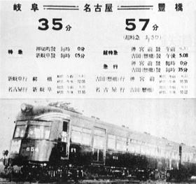 - 40년대 기후 - 나고야 - 도요하시 구간 개통과 함께 등장한 광고. 당시부터 근교 수송을 목적으로 한 특급열차가 운행되고 있었다.
