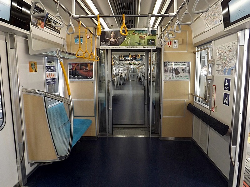 - 깔끔한 파랑색 바닥이 인상적인 13000계의 차내.