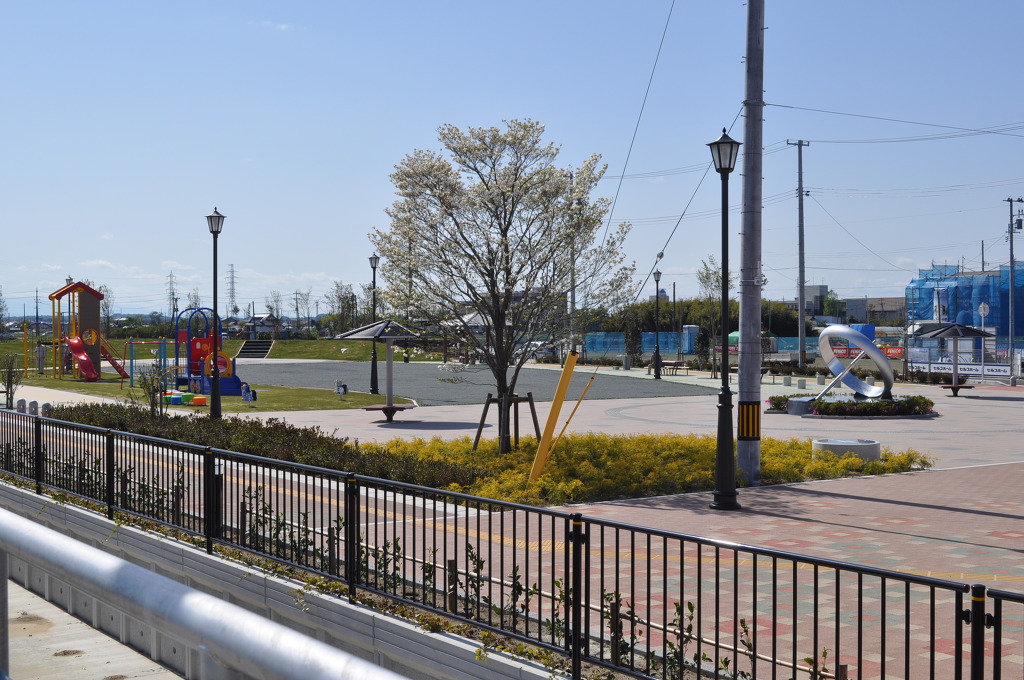 [역 밖으로 나오면 바로 승차장을 겸한 광장이 역시 같이 새롭게 조성된 것이 보이며, 현대적인 모습입니다]
