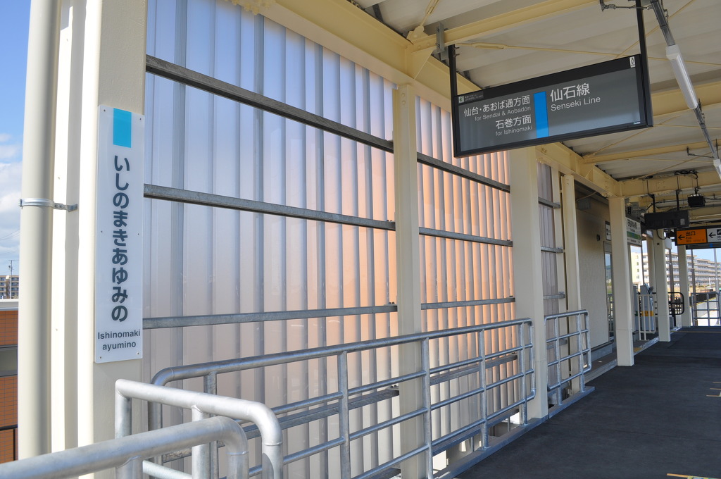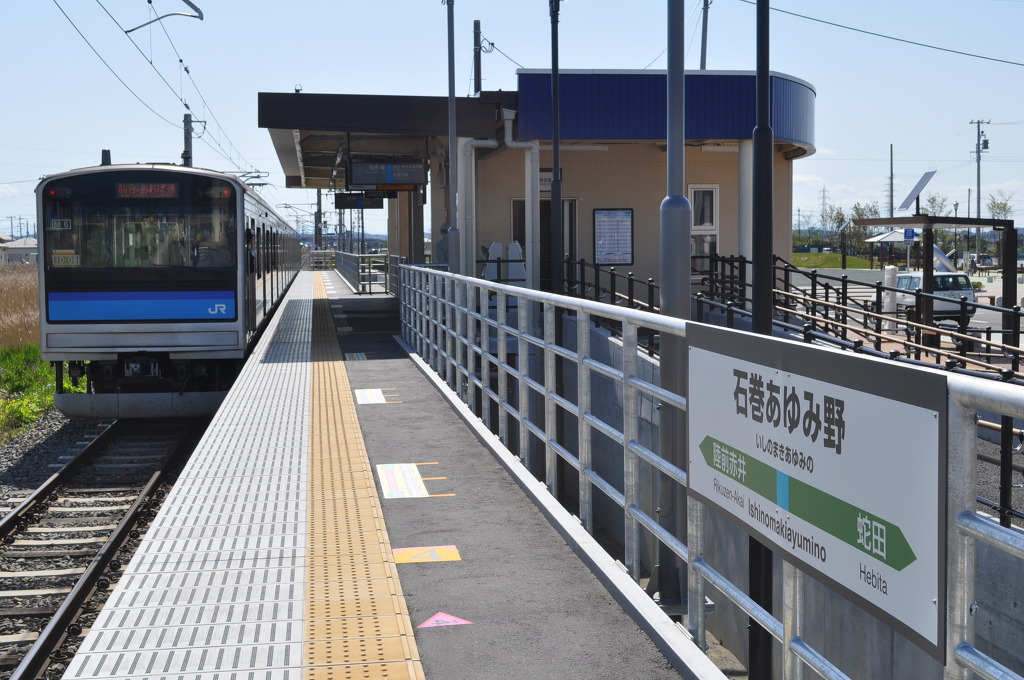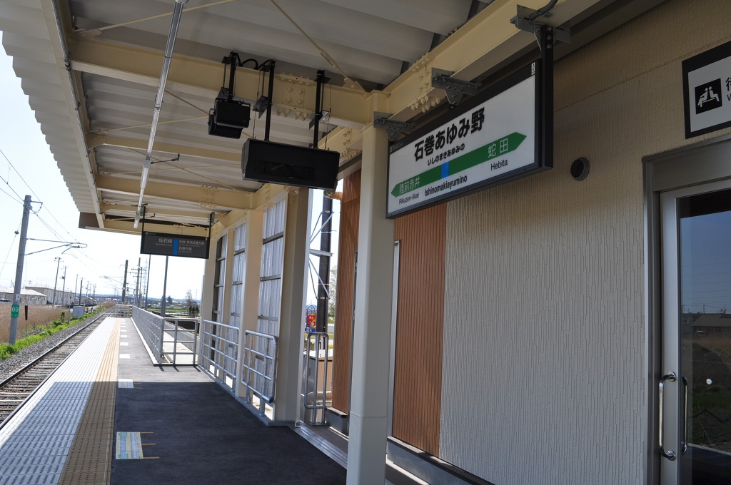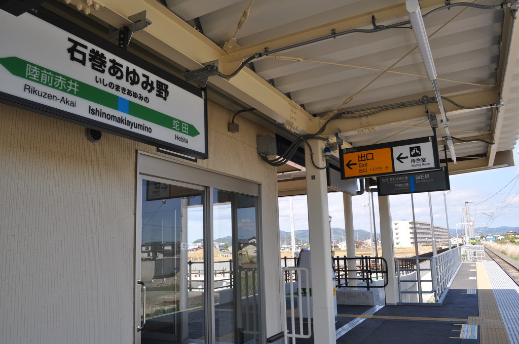 [JR 동일본 관할 구역에서도 2016년에 신규 개업 역들이 몇 개 있었습니다. 그 중 동일본 대지진의 피해를 입었엇던 도후쿠 지역의 미야기현의 이시노마키시와 센세키선에서 복구가 진행되어 왔었고, 이렇게 <이시노마키 아유미노 (石巻あゆみ野)> 신역도 개업하게 되었습니다.]