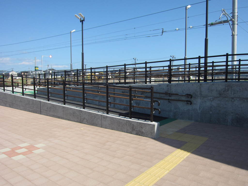 [역 밖으로 나오는 길은 계단 외에도 노인들과 자애인들을 위한 완만하게 경사진 출입로도 설치되어 있습니다]