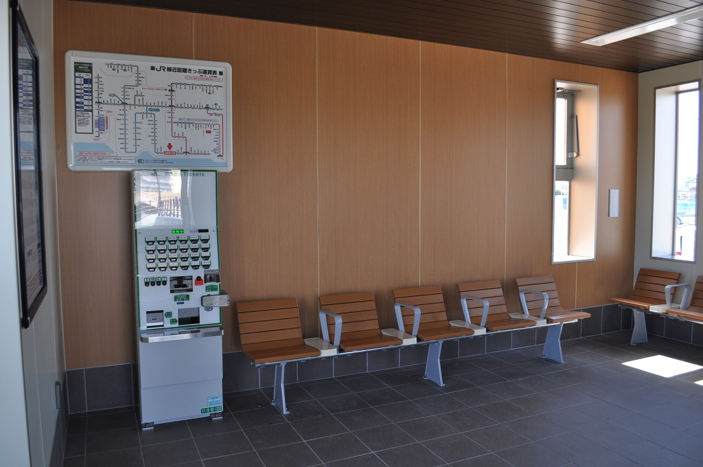 [또 다른 대합실 출입구 문도 보이면서, IC 카드 단말기만 보이고 정작 개찰대와 역무원은 보이지 않습니다. 즉, 이 역은 무인역으로 개업한 것임을 알 수 있습니다]