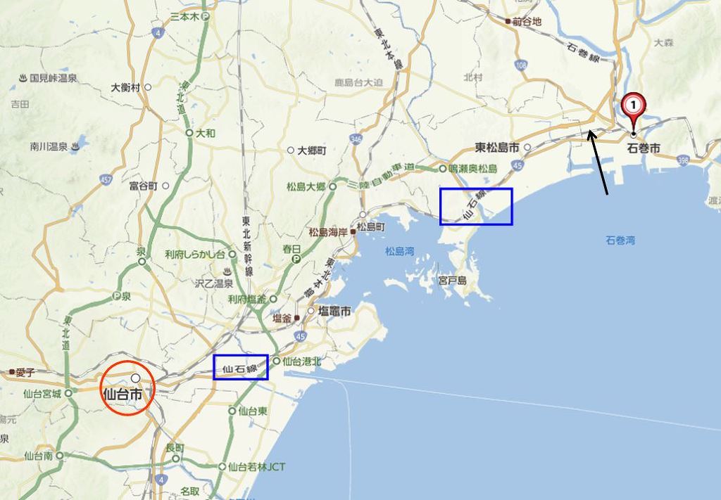 [2016년 3월 26일에 신규 개업한 역은 지도에서 보시는 것과 같이 센다이시와 이시노마키시를 연결하는 센세키선의 역으로 태평양쪽 종점인 이시노마키시에 소재한 역입니다]
