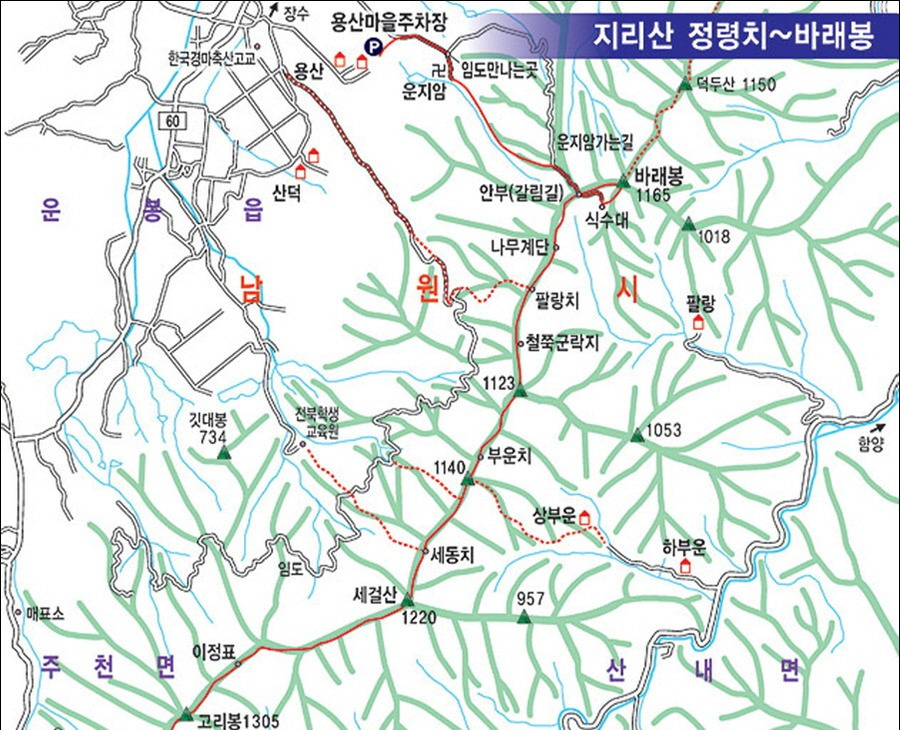 산행코스A코스 : 부운마을 - 부운치 - 팔랑치 - 바래봉 - 운봉마을
